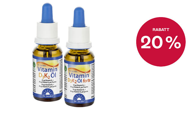 20 % Rabatt auf Original Dr. Jacob’s Vitamin D3K2 Öl (inkl. forte)
