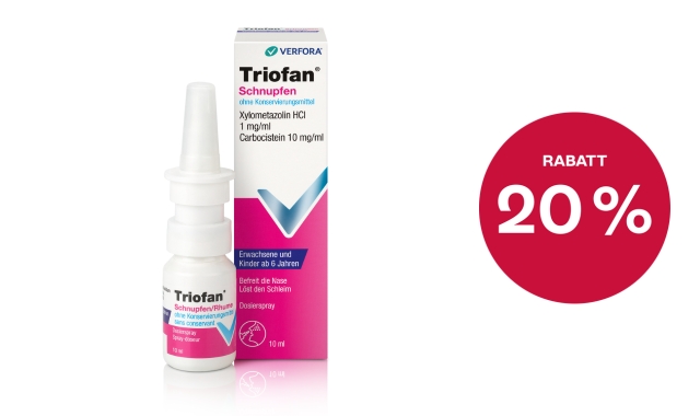 Jetzt 20 % Rabatt beim Kauf von Triofan® Schnupfen.